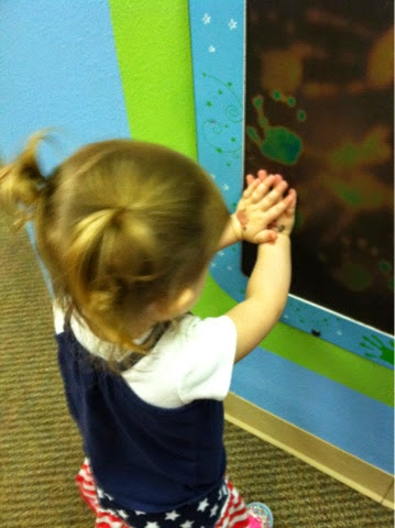 She also coughs after she eats something really cold. However, she adores ice cream and frozen yogurt so the cough almost seems worth it on occasion. After her appointment last week, I had wanted to go to the Tulsa Children's Museum. However, she had fallen asleep so we didn't get to go. Once we got back home, we took her to Orange Leaf for the first time. She loved it.